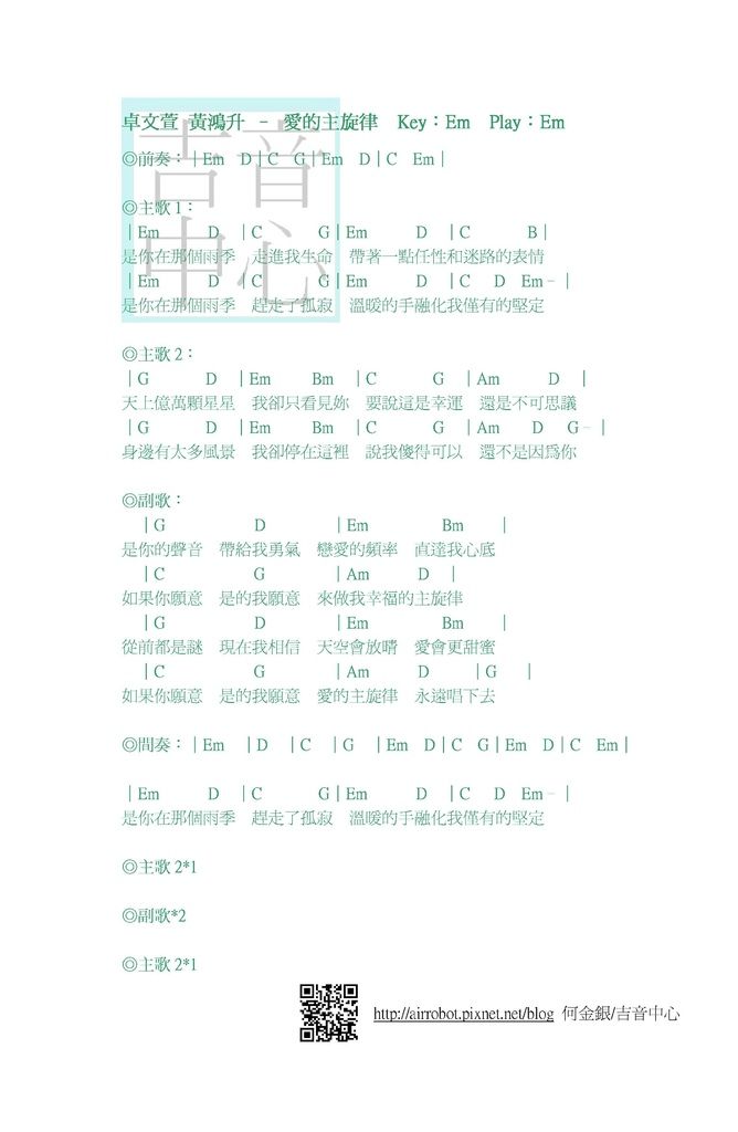 ◎卓文萱 黃鴻升-愛的主旋律-吉他譜-和弦譜 by 何金銀/吉音中心◎