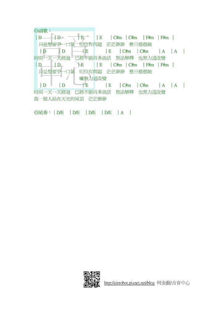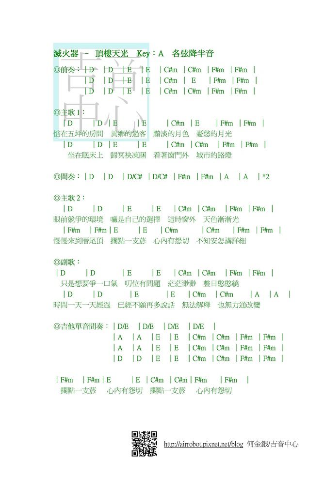 ◎滅火器-頂樓天光-吉他譜-和弦譜 by 何金銀/吉音中心◎