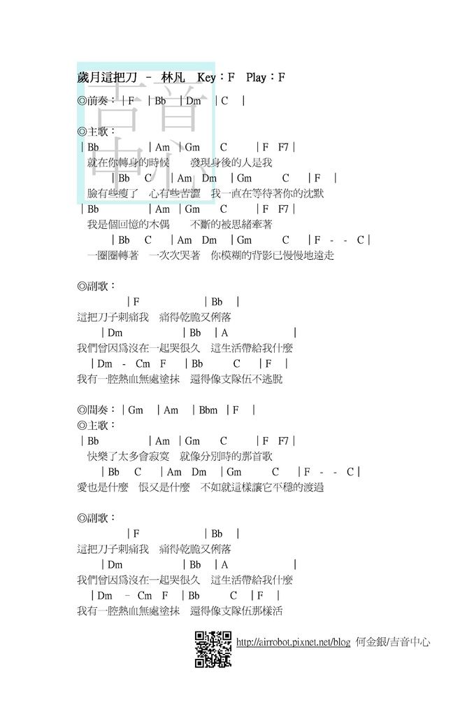 ◎林凡-歲月這把刀-吉他譜-和弦譜 by 何金銀/吉音中心◎