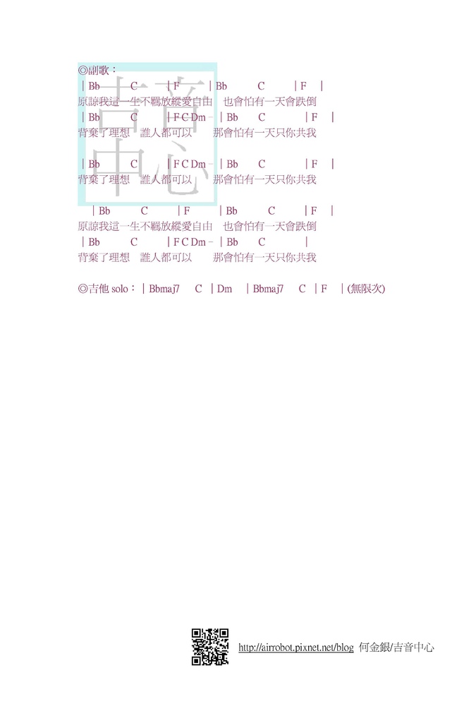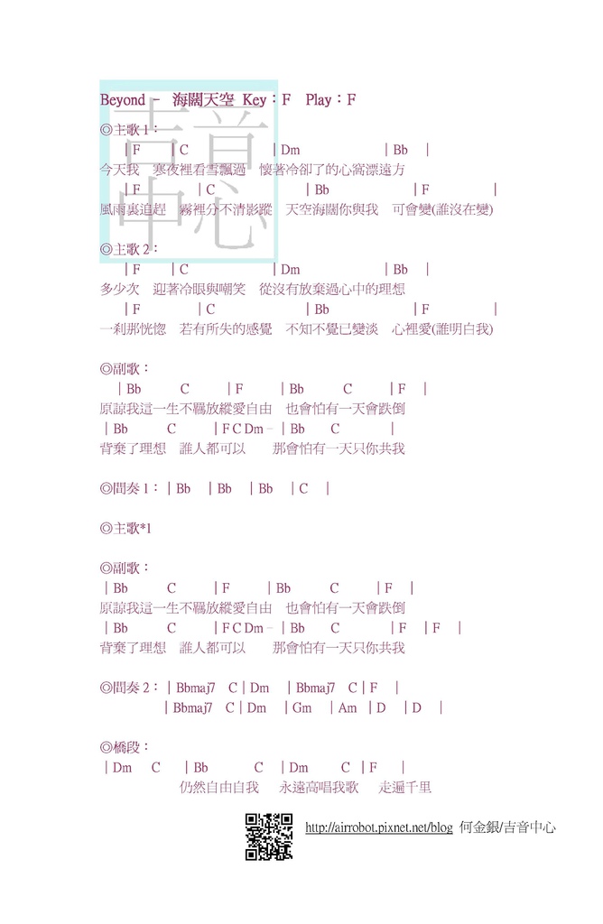 ◎Beyond-海闊天空-吉他譜-和弦譜 by 何金銀/吉音中心◎