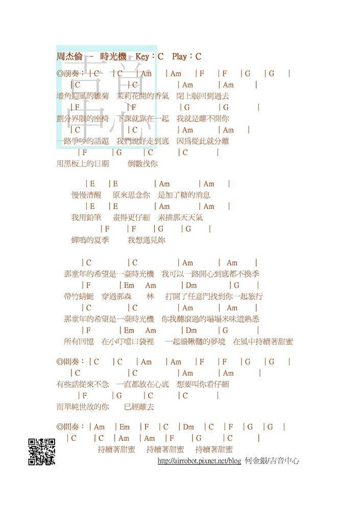 ◎周杰倫-時光機-吉他譜-和弦譜 by 何金銀/吉音中心◎