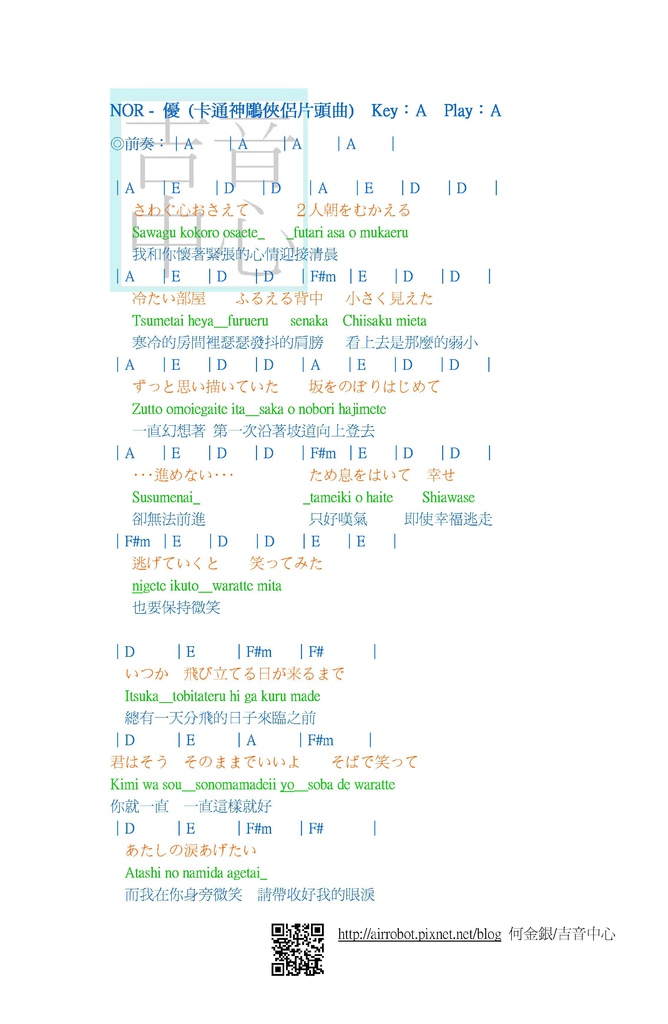 ◎NOR-優(卡通神鵰俠侶片頭曲)-吉他譜-和弦譜 by 何金銀/吉音中心◎