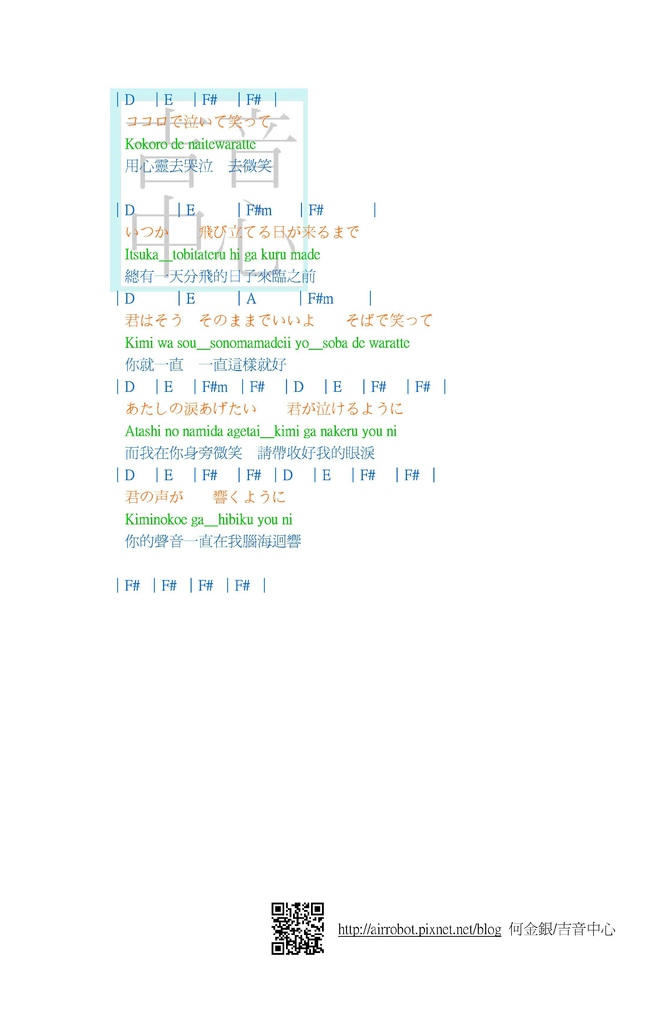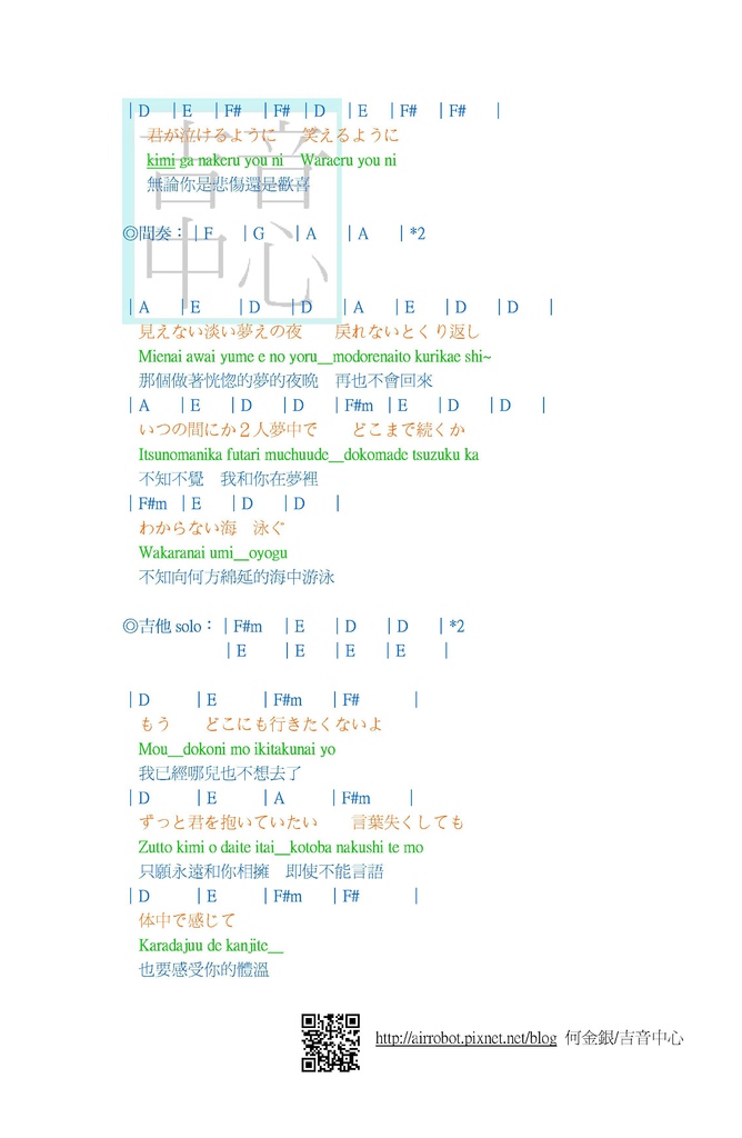 ◎因為是日文歌,所以不太好把和弦寫到對的字正上方,不過基本上和弦是沒問題的◎
