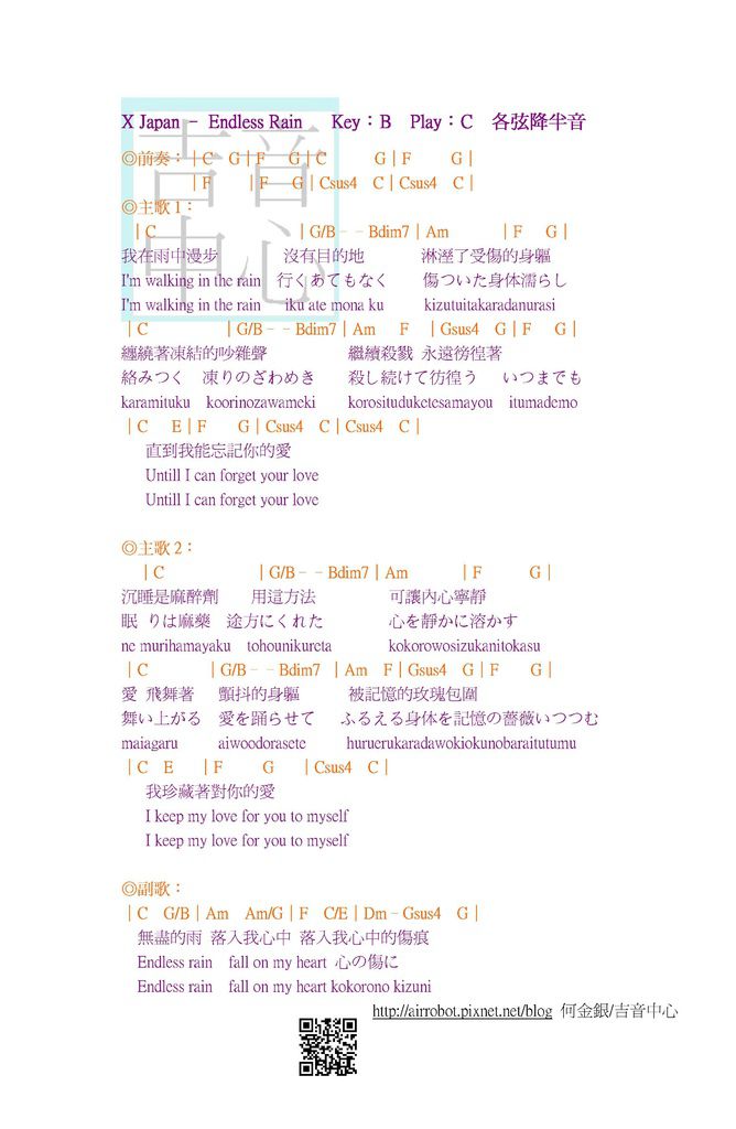 ◎X Japan-Endless Rain-吉他譜-和弦譜 by 何金銀/吉音中心◎
