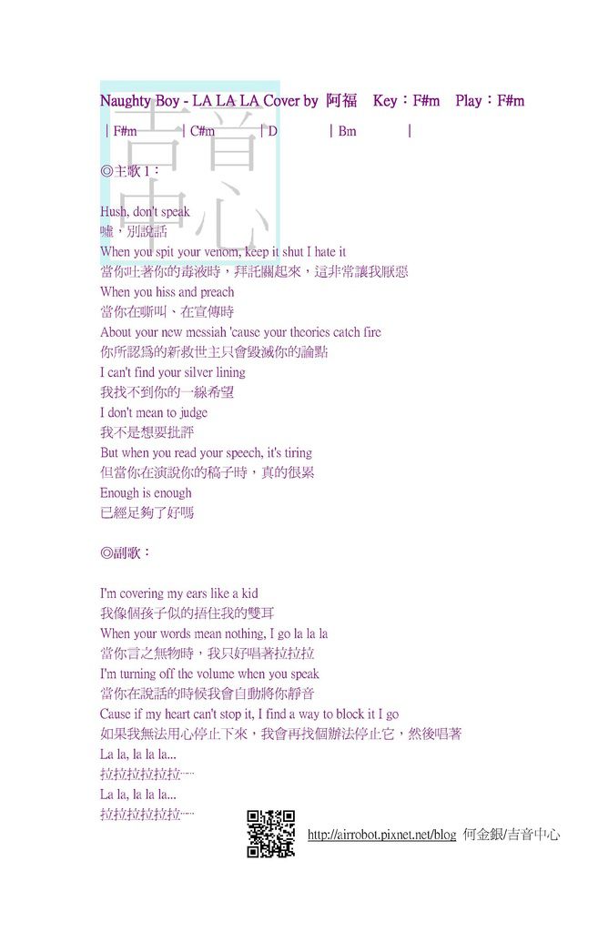 ◎Naughty Boy-LA LA LA Cover by 阿福-吉他譜-和弦譜 by 何金銀/吉音中心◎